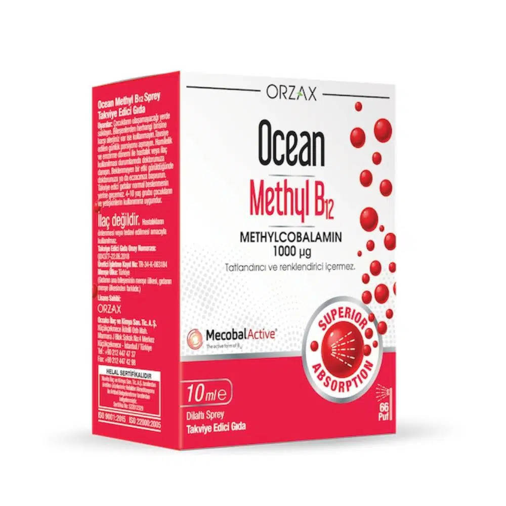Ocean Methyl B12, metilkobalamin formda aktif B12 vitamini içeren gıda takviyesidir. Sprey form avantajı ile hızlı ve kolay kullanımı ile avantaj sağlar.