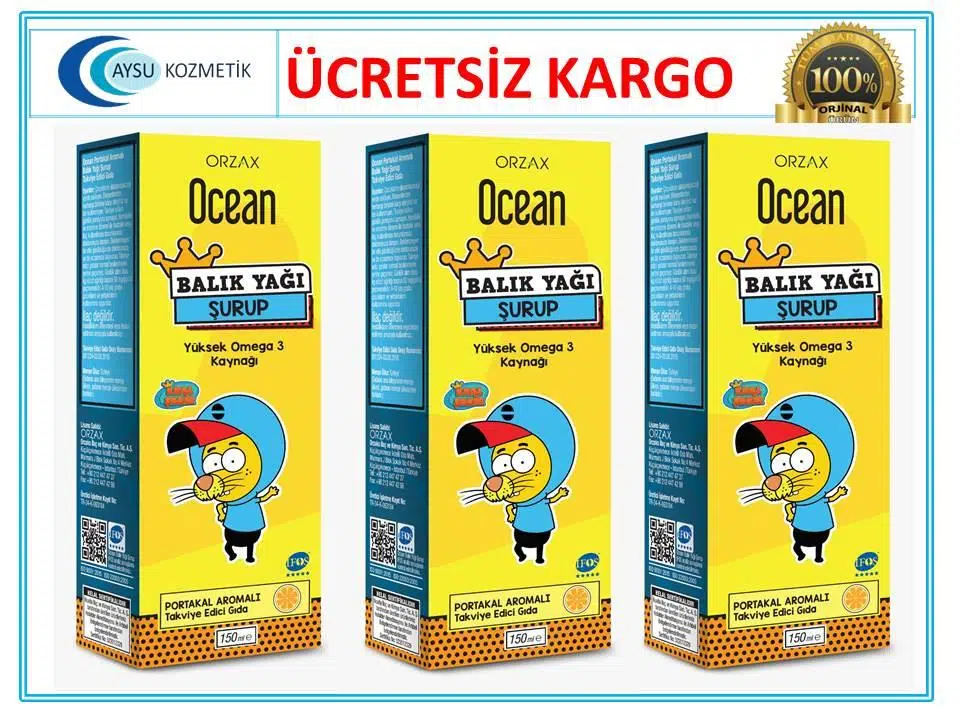 Ocean Balık Yağı Şurup 150 ml. Zengin Omega 3 Kaynağı Portakal Aromalı Takviye Edici Gıda