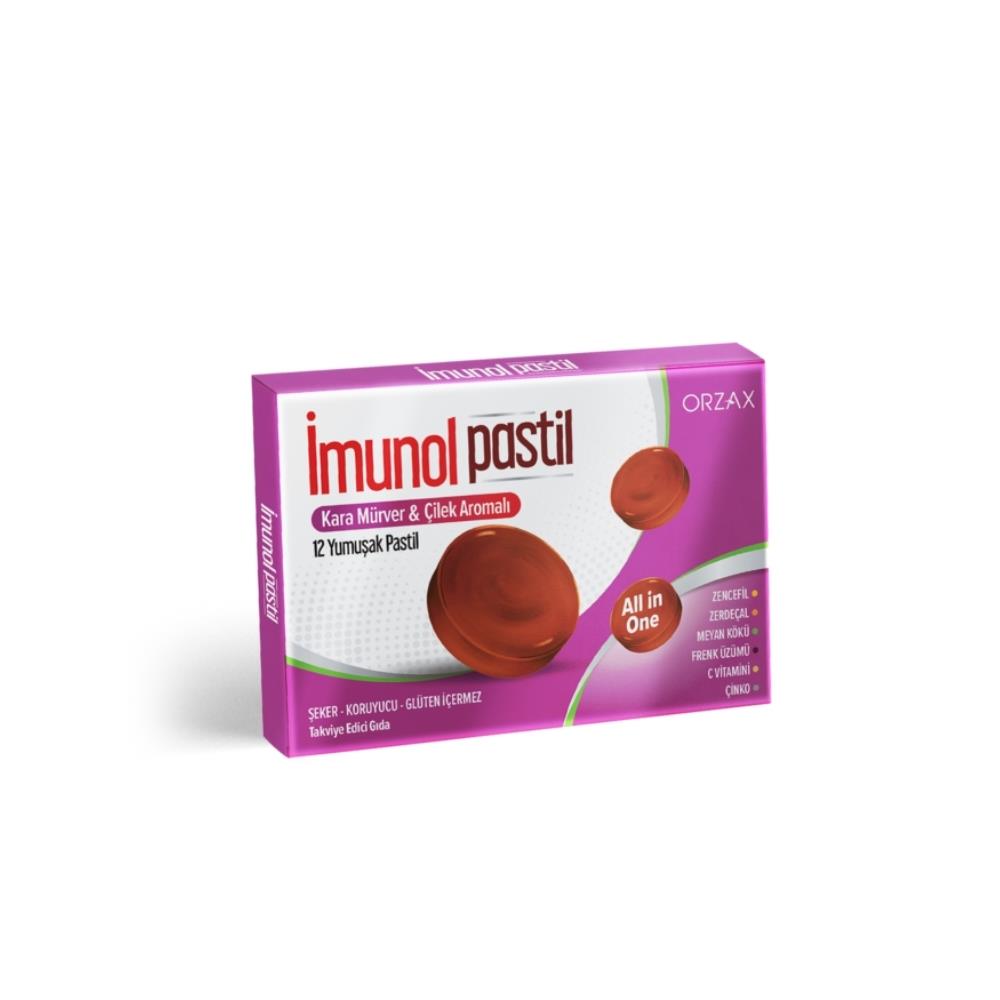İmunol Pastil – Kara Mürver & Çilek Aromalı , zencefil, kara mürver (Sambucus Nigra), vitamin C, çinko (zinc), zerdeçal (turmeric), meyan kökü (licorice), frenk üzümü (blackcurrant) içeren çilek aromalı yumuşak formda pastildir. Her kutuda 12 adet, 2.000 mg pastil içerir. Bitkisel ekstrelerden elde edilmiştir. Şeker, glüten ve koruyucu içermez. Tadı stevia ile dengelenmiştir.